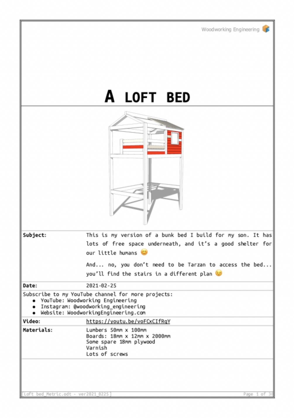 The plan will show you step by step drawings, with 30 pages full of of details and measures, and a complete bill of materials.